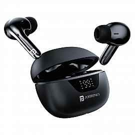 Portronics Harmonics Twins S16 in Ear Wireless TWS Earbuds with 24 Hrs Playtime, Clear Calls, Game and Music Mode, Low Latency, Bluetooth 5.3v, LED Display, Type C Fast Charging – Black